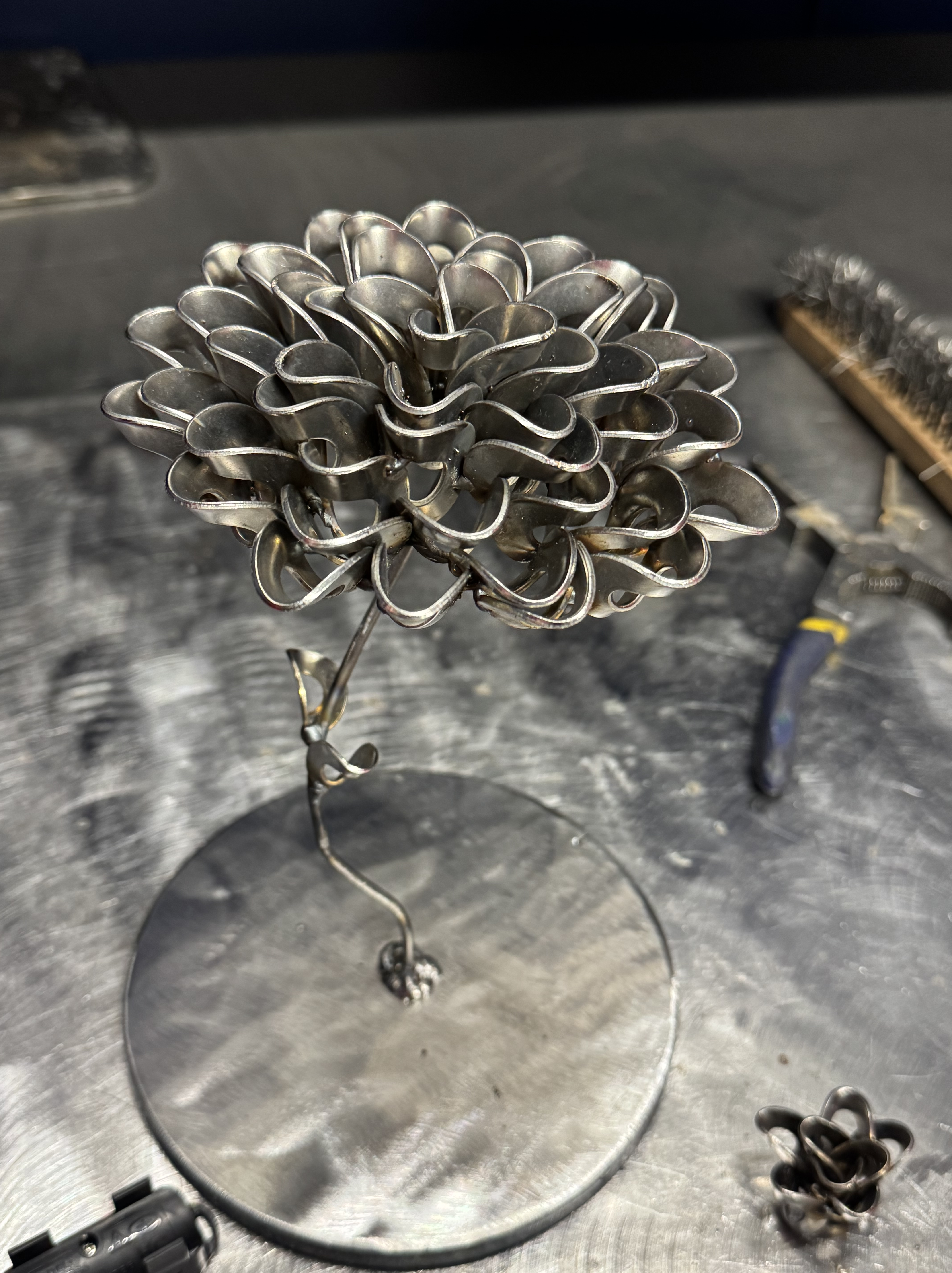 My name is Antonio Cardine, and I am a 24 year old Chicago native. I attended and graduated from Heartland Community College and received certifications for Gas metal arc welding, Shielded metal arc welding, and Gas tungsten arc welding. Welding taught me a lot but the most important things it taught me were patience, perseverance, and the true art of creativity. After honing skills through formal training and hands-on experience, I now create pieces that push the boundaries of traditional metalwork. Whether it’s large-scale outdoor installations or finely detailed indoor sculptures, each piece reflects a deep commitment to craftsmanship and innovation. Beyond technical prowess, I seek to evoke emotional responses from viewers, using welding as a medium for storytelling and self-expression.